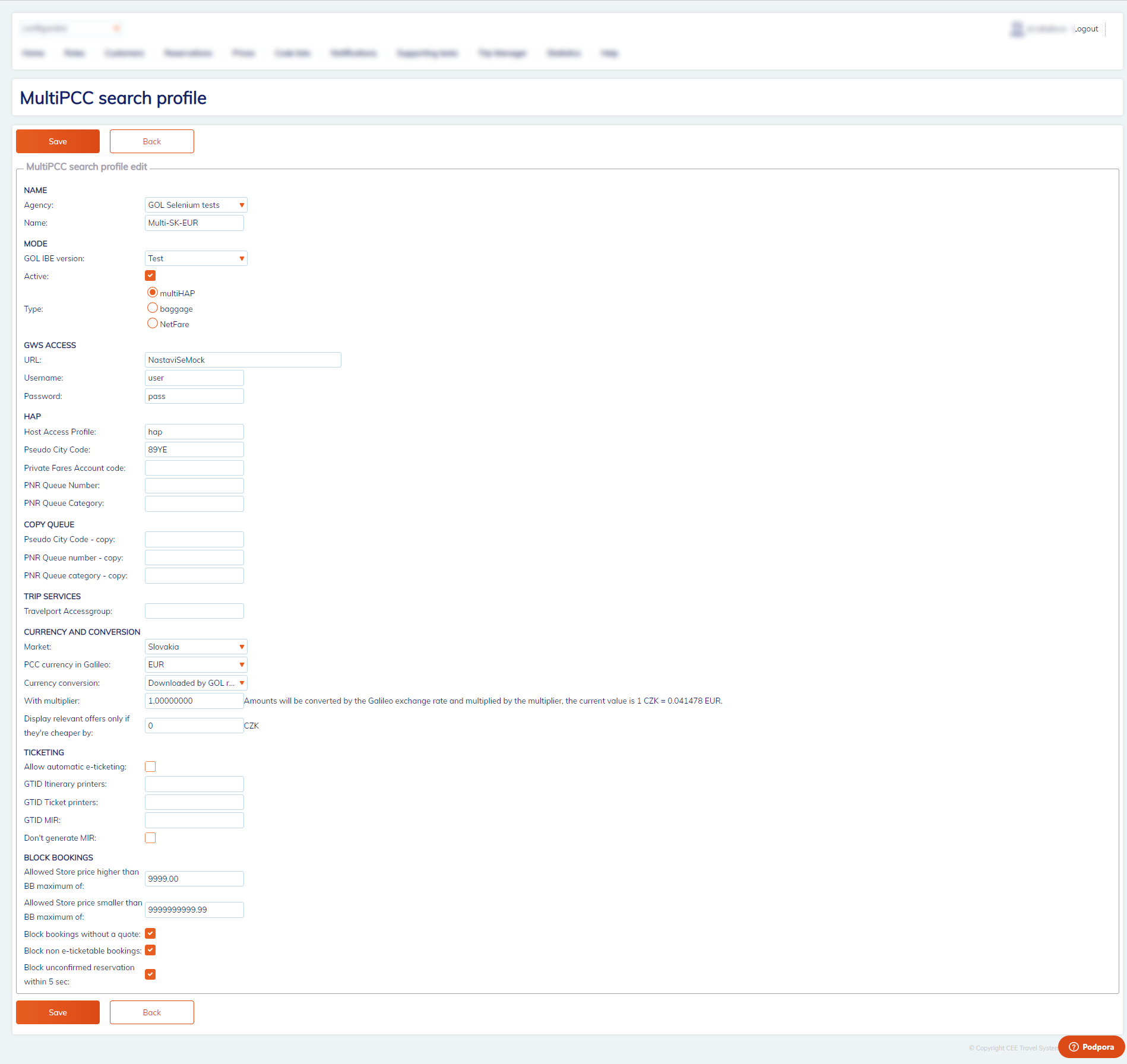 The basic settings for communication with the GDS remains the same as in Agency profile