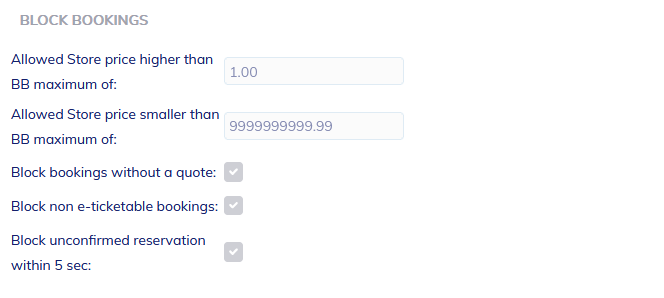 **22) Block Non E-ticketable Bookings:** Booking is not created if it is not possible to issue an e-ticket automatically.