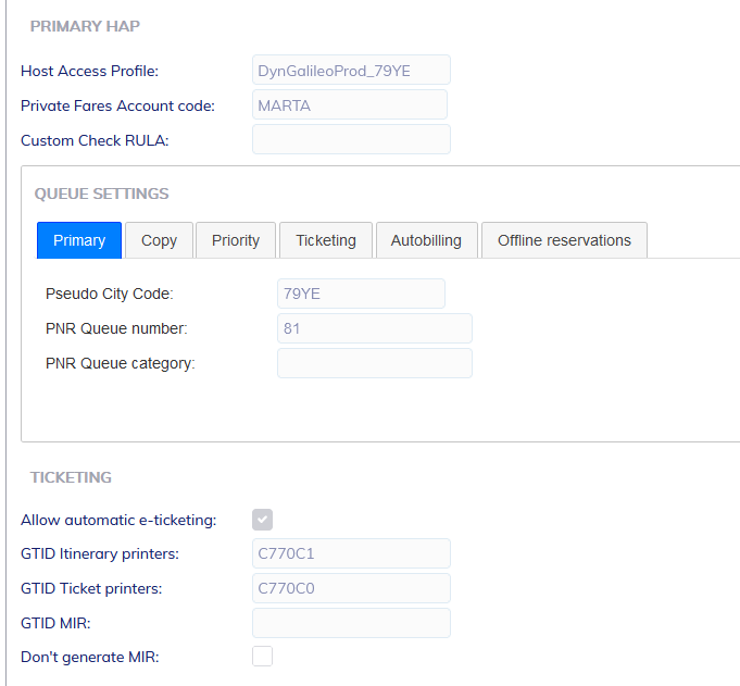 **13) PNR Queue Number** - The queue number where bookings from Galileo are sent.