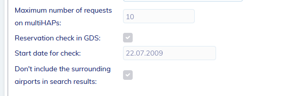 **5) Maximum Number of Requests on MultiHAPs** - This setting relates to the MultiPCC functionality and defines the maximum number of parallel requests sent to the GDS per single search request initiated by the customer. This setting can only be modified by the system administrator.